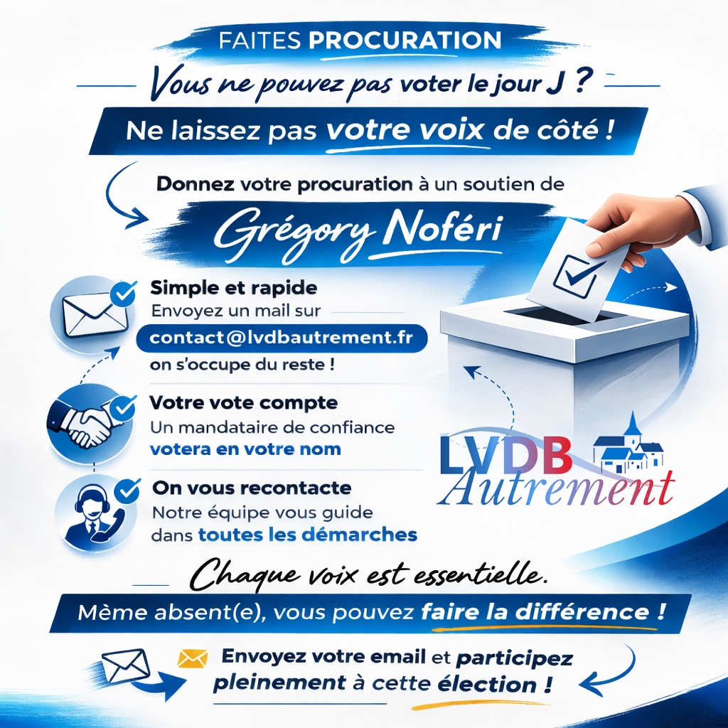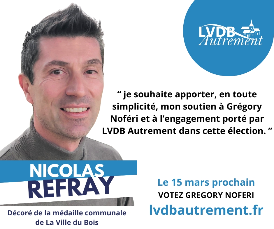 Même si j’ai quitté la ville il y a plus d’un an, les liens humains que j’y ai tissés demeurent très forts. C’est pour cela que je souhaite apporter, en toute simplicité, mon soutien à Grégory NOFERI et à l’engagement porté par LVDB Autrement dans cette élection.
