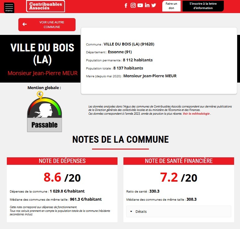 C’est avec les données obtenues par le Ministère des Finances que l’association passe au crible les 34 000 communes françaises afin d’informer les Français sur la gestion de leur ville. La Ville du Bois ne sort pas bonne élève de cette étude.